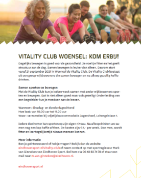 Wil je meer weten? Neem dan even contact op via een reactie op dit bericht, telefoonnummer 06 43 83 74 78 of stuur een mail naar m.van.ginneken@eindhoven.nl. Op de website eindhovensport.nl/vitality-club vind je alle actuele informatie.